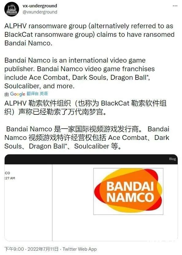 它在声明中表示:“2022年7月3日,Bandai Namco Holdings Inc.确认,第三方未经许可进入亚洲(除日本)若干集团公司内部系统。确认未经授权访问后,我们已采取措施,例如阻止对服务器的访问,以防止损害蔓延。