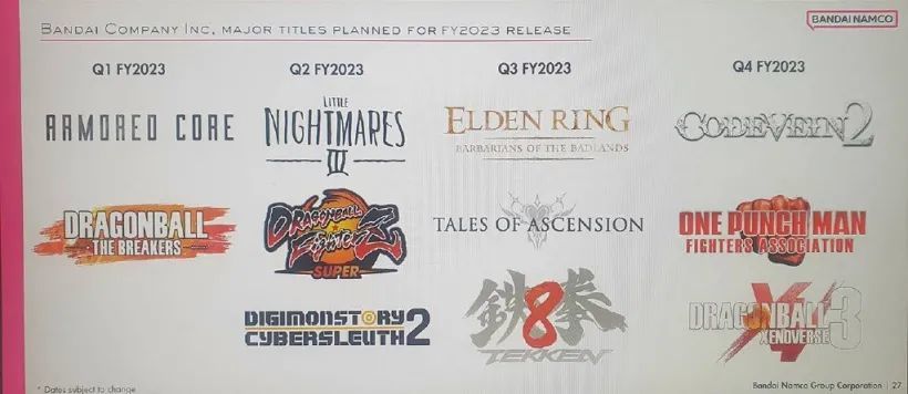 万代南梦宫是日本知名游戏发行商,以《吃豆人》《铁拳》和《黑暗之魂》系列等而闻名,包括今年大热的《艾尔登法环》也是该公司旗下的游戏。
