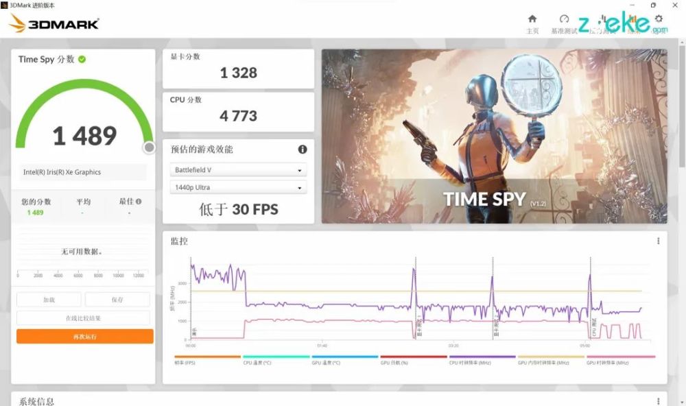 虽然这是一种轻型机器,内置微芯片驱动,但是使用3D标记来测试Intel Torch Xe G7内核的性能。这是一个集成芯片,内置96台欧盟和768台流处理器,在时间间谍面前的测试现场,实际得分1489分,面对一些中级和低级游戏,你可以通过降低图像质量来改变游戏屏幕的流动,别担心使用它,这是件大事。