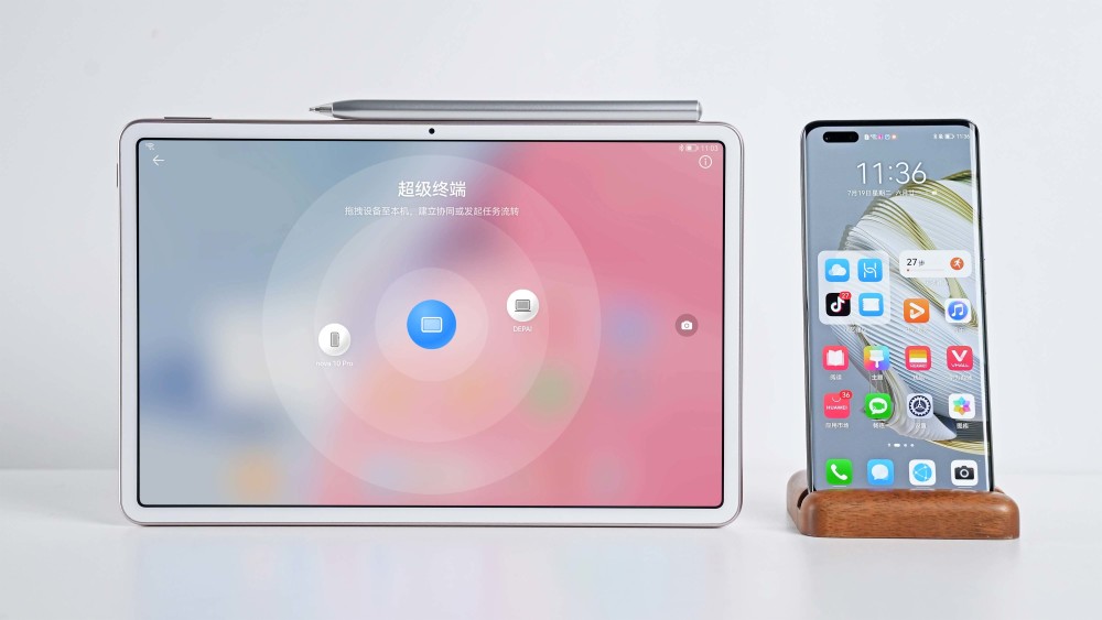 对大学生群体来说,当您的平板电脑、手机、PC登录到同一个华为帐户时,它们在同一的WiFi环境中,超级终端已经形成。譬如,当我在 Huawei MatePad 11 控制中心 - 超级终端模块时,将Huaweinova 10 Pro图标拉近平板图标,两图标自动吸附后,换句话说,平板电脑与手机之间的协调连接已经完成。