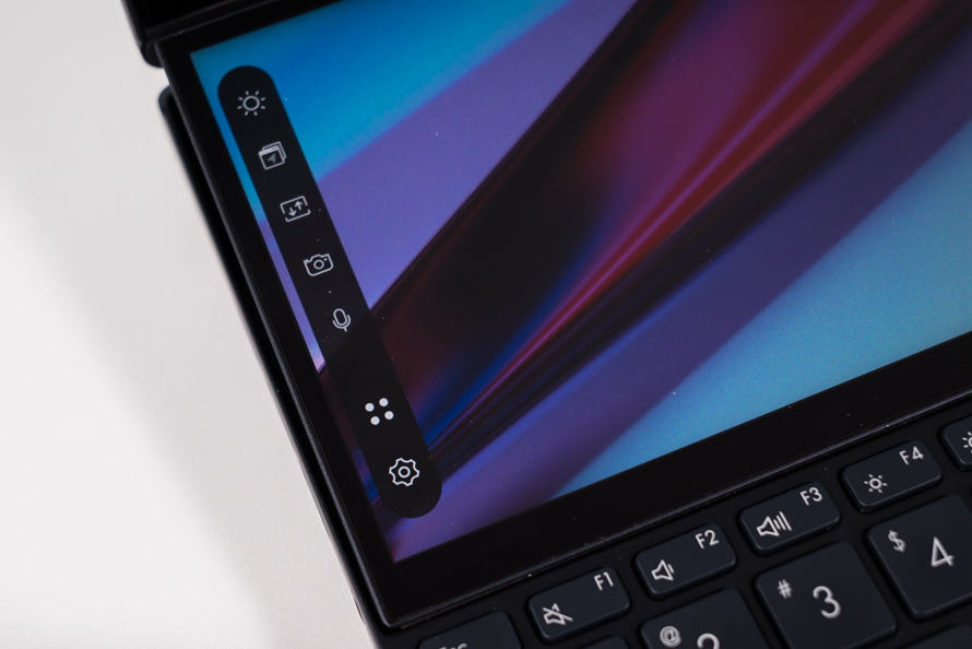 三星刘英X双屏Pro2022的C侧是整个轻型书中最具个性的地方,有一个可升起的侧屏幕, 和标准键盘.键盘使用1.4mm大键盘,同时,目前办公室轻型书的键盘采用了更流行的底板设计,它通过使用可逆光来改善用户打字和办公室体验,使轻型书在黑暗中易于使用.此外灵耀X 双屏Pro 2022也将触控板放置到了右边,此外,物理和左键也被添加。