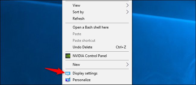 要在 Windows 10 上旋转屏幕,请右键单击桌面,然后选择“显示设置”命令。在 Windows 7 中,请改为右键单击“屏幕分辨率”命令。