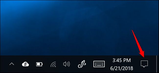 为此,单击任务栏右边的通知图标或按Windows+A键打开操作中心。