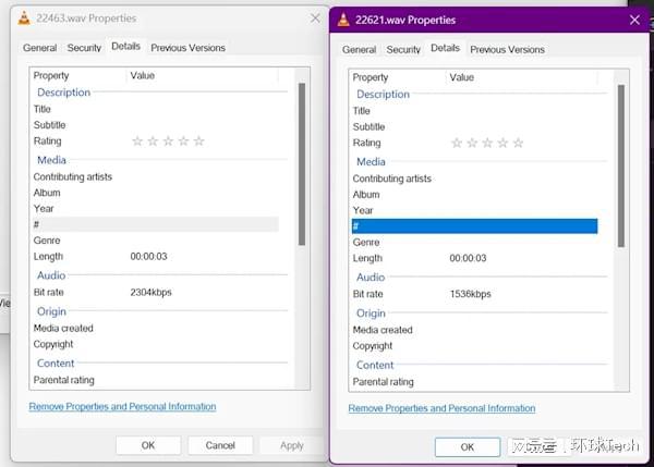 根据网友Xeno发现的信息,Windows 11启动声音的比特率(bit rate)从2304 Kbps下降到了1536Kbps。