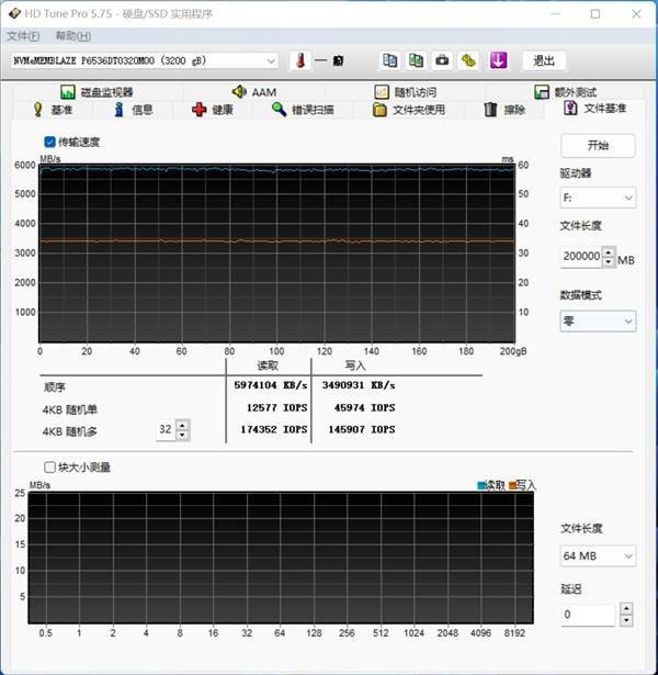 测试长度为200GB,PBlaze 6 6536 3.2TB SSD的性能像直线一样稳定,读数接近6GB/s,从头到底的写数为3.5GB/s,没有降低。