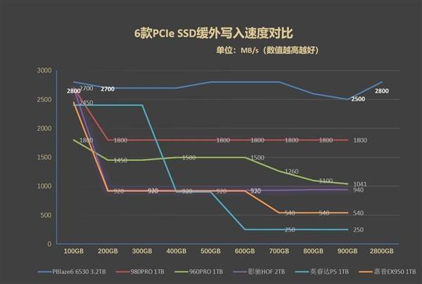 例如,三星的980 PRO 2TB的写字寿命为1200TBW,而PBlaze 6 6536 3的写字寿命为1200TBW。