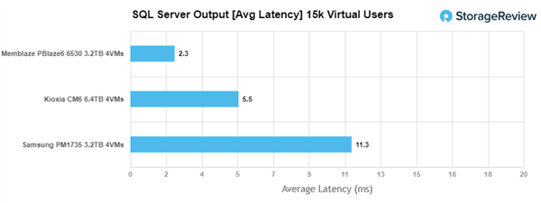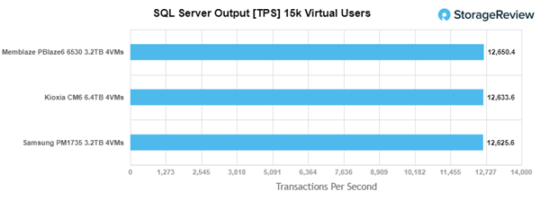 在SQL Server测试链接中,StorageReview使用33GBSQL Server数据库,测量OLTP性能和延迟在15,00个虚拟用户负载下。每轮的测试时间为3小时,包括2.5小时的预处理和30分钟的抽样。
