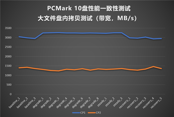 PBlaze 6 6536在测试断片小文件磁盘的复制的各个阶段的性能也非常稳定。