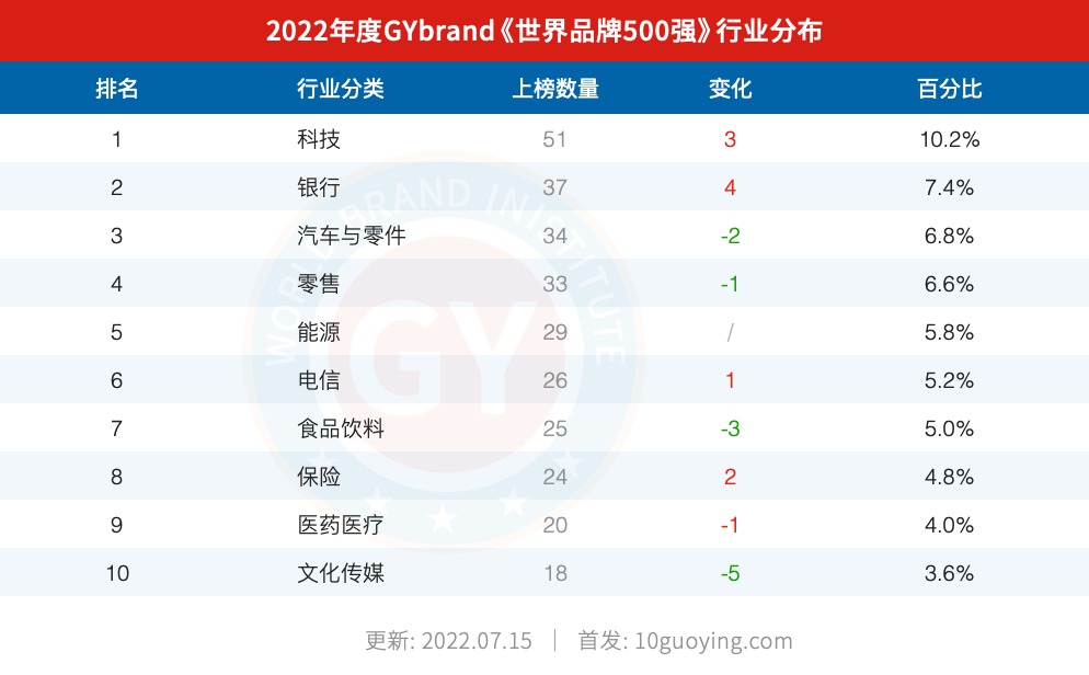 7月15日,全球领先品牌价值评估机构GYbrand(英语:GYbrand)于2022年发表了一份关于全球500强品牌的研究报告。品牌价值已成为衡量企业无形资产和软实力的核心指标。这是世界500位最有价值的品牌列表,吸引了行业领袖的注意。来自26个国家的500家品牌,共有253名来自美国和中国的候选人当选。它是世界50强品牌之一。
