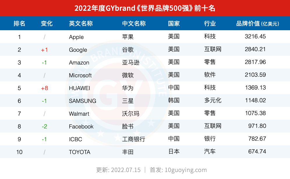 2022世界品牌500强排行榜发布 全球品牌价值500强名单解读