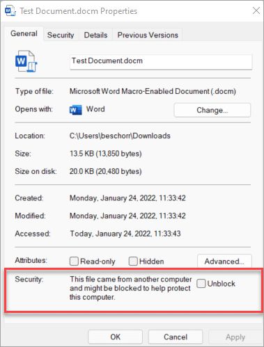 但是,如果您已使或禁止Office宏文件从互联网策略中运行,那么您的组织不会受到此更改的影响。