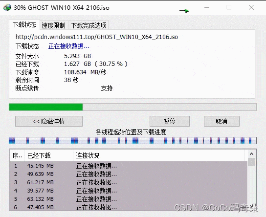 在这里我打开32个线程下载。