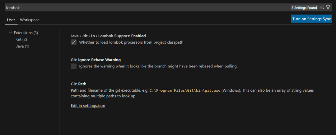 如果开发人员不想要内置的 Lombok 支持,我们添加了一个可以打开/关闭它的设置。只需转到设置并搜索“ lombok ”。这是一个截图。
