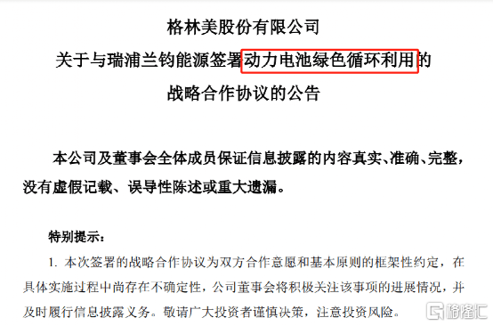 7月24日晚,格林即将降落在瑞士交易所的火车上。三项积极的公告在一 breath中发布:第一,与世界500强企业周山工业有限公司签署了战略合作协议,以绿色回收电力电池;第二,与商河智能有限公司签署了战略合作协议,以机械电气化工程和回收电池;第三,在6月底成功完成在印尼周山的镍资源项目第一阶段的多边合资1亿美元。计划在10月底之前全面运作。