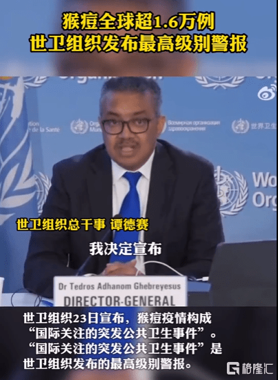 当地时间23日下午15点,世界卫生组织在日内瓦召开记者会。总干事谭德塞宣布,将猴痘疫情列为“国际关注突发公共卫生事件”。“国际关注的突发公共卫生事件”是世卫组织发布的最高级别警报。