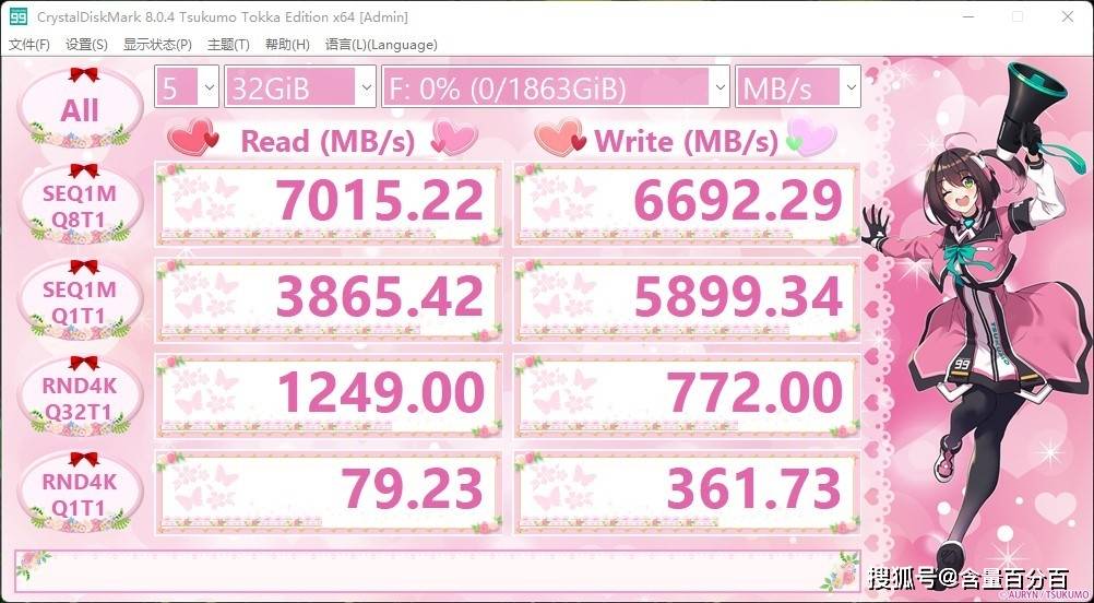 在Crystal Disk Mark下,许多人将选择1GB直接在参数部分,如果是SATA SSD,这个1GB参数并不重要,但是对于M.2的NVMe SSD,作为参考,它对我们来说没什么用处,我个人认为至少8GB,16GB启动,因为许多类型的产品(空盘)随着参数的增加有问题减速。我选择32GB作为参数,工程师AORUS GEN4钛板4K部件已整齐,序列读写性能分别达到7015MB/s,6692.29MB/s,顺序读取性能达标,性能的顺序略低于官方测试数据,但是, 考虑到 一些 参数,AORUS GEN4钛雕版板一般表现得很好.