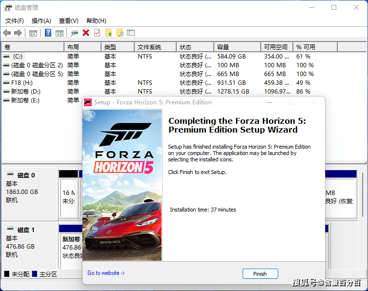 在游戏安装方面,我选择了两个大型的本地游戏来比较,分别是《地平线5》和《地铁:离乡》,所有游戏在局部压缩后安装,所有游戏都按默认安装在CD上。技嘉AORUS GEN4钛雕盘安装完成《地平线5》的时间为37分钟。