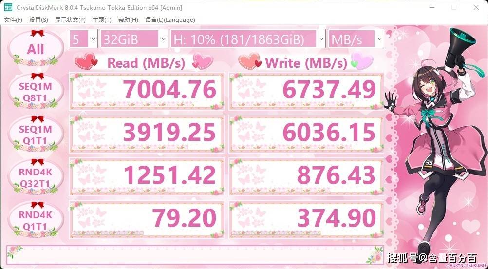 既然固件有所升级,因此,AORUS GEN4钛雕刻盘的读写性能是否会有所改善,我只是在这里测试了CDM。参数直接选择32GB,AORUS GEN4钛板的相应的序列读写性能分别为7004.76MB/s和6737.49MB/s,与以前的固件升级前的测试结果相比,AORUS GEN4钛雕版板在书写性能上得到了改进.