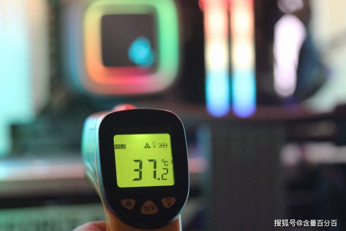 实际测试方式为测温枪在散热铠甲表面来回移动找寻温度最高的点,由于测量设备是入门级的测温枪,测试结果会有所偏差,结果仅供参考。测量的技嘉AORUS GEN4钛雕盘自带散热铠甲表面温度最高为37.2度。