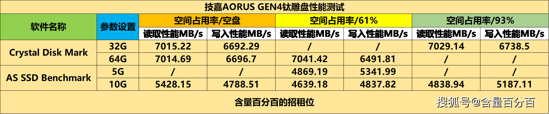 为了内容更具参考性,这篇文章我会从空盘、61%空间占用率和93%空间占用率来对技嘉AORUS GEN4钛雕进行测试,另外加入了与SATA SSD的对比测试,在散热性能方面对比主板自带的散热铠甲。