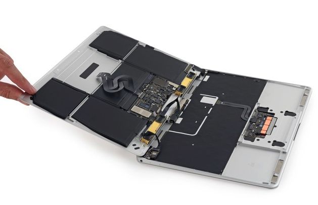 为了使机器非常轻,内部结构非常紧凑,并且显然没有需要暖气扇占据这样的位置,因此苹果首次采用了在12英寸的Macbook上无动暖气扇的设计。