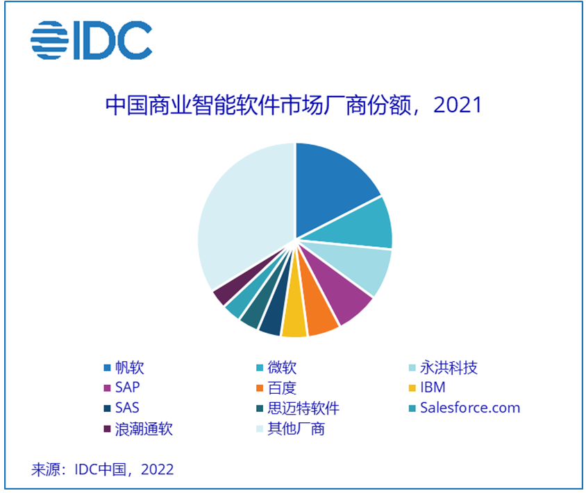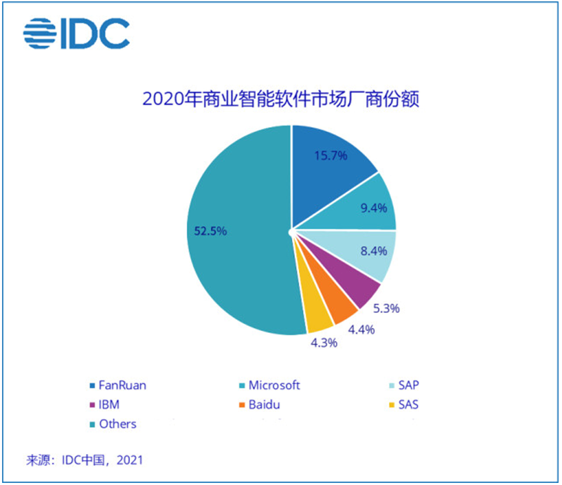 2021年中国商业智能软件市场:帆软 微软 永洪科技 SAP 百度位居市场前五