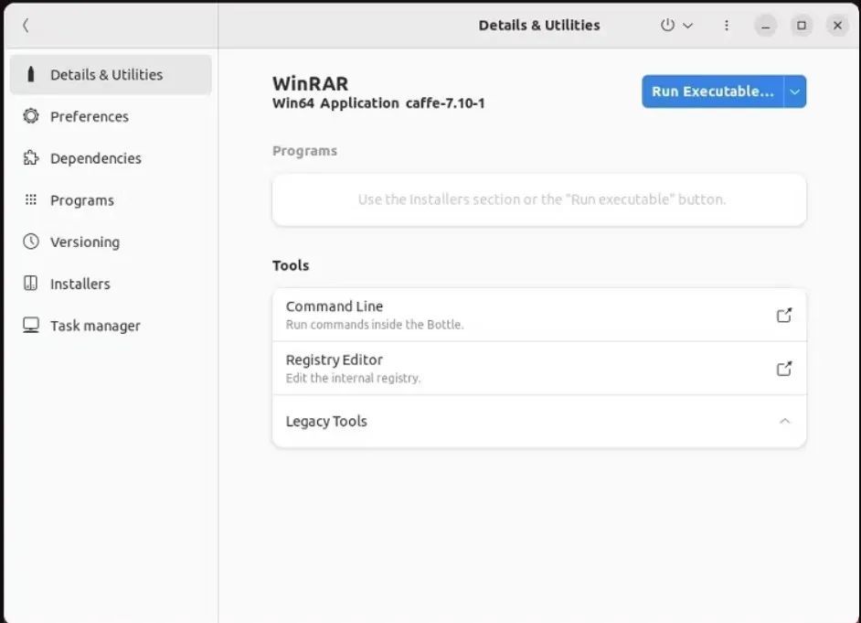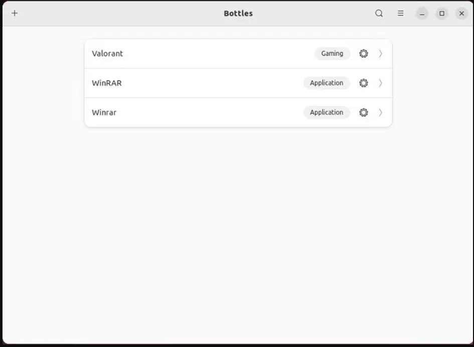 现在,您将看到Bottles主界面中列出的新Bottles。双击 WinRAR 将其打开。