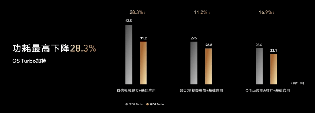 简单来说,有了光荣的OS Turbo技术,当笔记本执行某些任务时,功率消耗 、 性能和连续性将得到不同程度的改进和改进.根据当时 Glory 所给出的数字,打开OS Turbo后,产品最大功率消耗可降低28.3%,浏览网页可减少11.2%,办公室可以减少到16.9%,降低日常使用功耗,并提升续航。