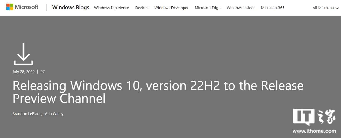 微软 Win10 22H2 首个预览版面向 Release 频道用户推送
