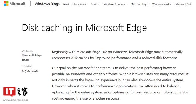 微软:Edge 浏览器已内置磁盘缓存压缩技术