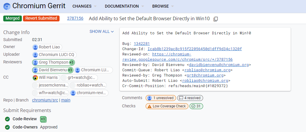 以下是Google描述的Chromium Gerrit的代码更改: