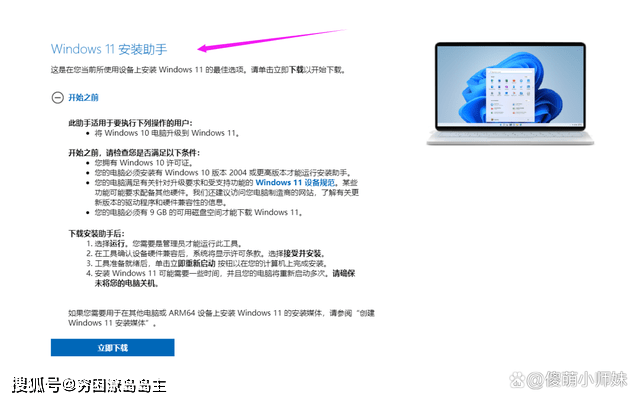 我们打开微软的网站并升级微软提供的Windows11安装助理,