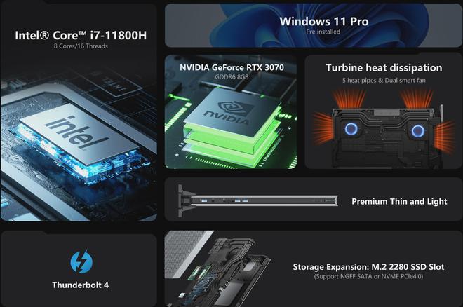 显卡方面,NUCXI5和NUCXI7分别配备GeForce RTX 3060 6GB / 3070 8GB GPU。同时,内置的双扇式散热器提供了1300+热 dissipation孔在背部和四个大气孔在侧面。