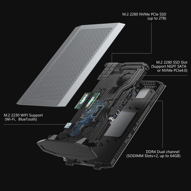 存储方面,该系列超薄主机支持64GB DDR4双通道SO - DIMM内存+2TB双M.2 2280 PCIe 4.0/NGFF SATA SSD slot,它也可以预先安装在Windows 11专业操作系统上。