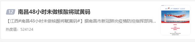 #南昌给予黄色代码48小时,不制造核酸 # 登上了热搜靠前位置。