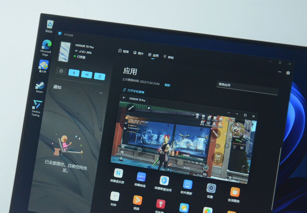 大家应该都知道, glory 70 Pro和 glory 笔记本电脑可以实现多屏幕协同,也就是说, 你可以在电脑上操作手机, 文件传输等等.但也许考虑到并非每个人都使用一个光荣的笔记本电脑,因此,荣耀的70Pro系统有一个叫做“连接到Windows”的功能,通过连接到计算机、笔记本电脑和其他Windows设备,功能也可以实现类似于多屏幕协作。这是一个多屏幕协调的替代品。