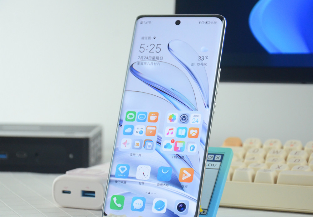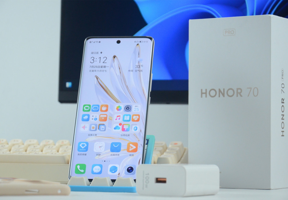 光荣70 Pro也有一个充电设计,我非常喜欢,光荣70 Pro采用100W快速充电设计,内部电池为 4500mAh,并且在工厂出厂时在包装中提供100W充电器。