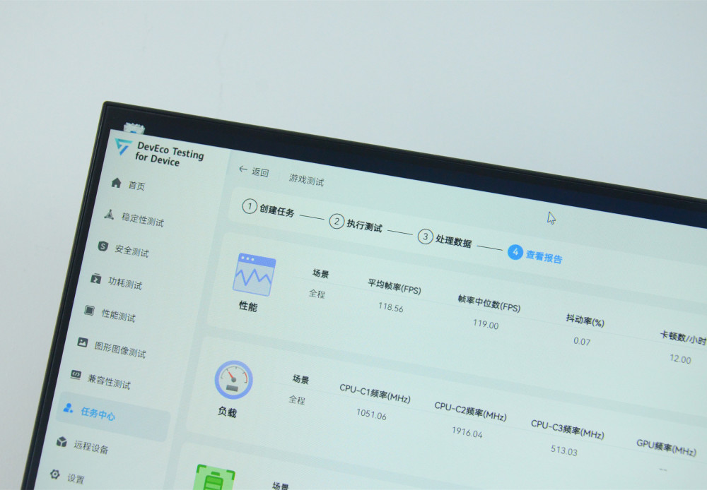 大约20分钟后,在高分辨率和极高的帧速上玩国王,整个手机后盖微热,同时,Huawei的DevEco测试记录了游戏帧率,你可以看到, Glory 70 Pro的平均帧速率是118.56,表现很稳定,它还侧面显示了70 Pro的辉煌表现,控制热量真的没问题。因为如果没问题,帧速率就不会稳定。