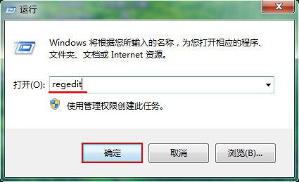 2.打开运行窗口,输入Regedit命令并按下面所示确定按钮: