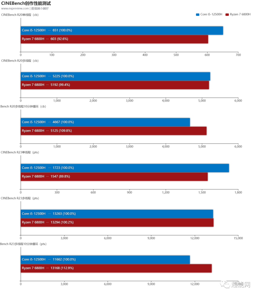 酷睿i5-12500H和锐龙7 6800H:轻薄本上的CPU性能测试对比