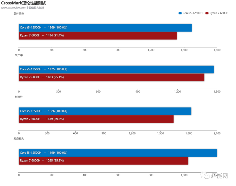 CrossMark理论性能测试可以更客观地反映实际使用中的性能经验,这不是一次全长运行测试。这对于普通用户日常的实际使用来说也是一样的,它也是平日最代表的温和的政府。测试表明,Core i5-12500H在各种项目中取得了更大的领先地位,最高 ဦး率达到16.98%。