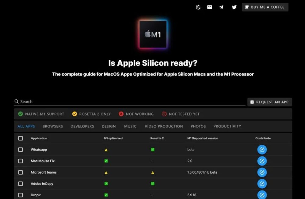 首次使用Mac系统,有一个难找到的洞穴,Mac系统与许多通用程序不兼容。尽管苹果开发了Rosetta2来翻译这些非本地程序,但是直接效果就是,在这些非本地软件上,M1芯片的性能损失约20%。根据目前权威网站“Is Apple Silicon ready”的统计,Microsoft Office全家桶、Adobe Acrobat Reader、微信、QQ、钉钉、Adobe全家桶这些常用的办公软件和创意视觉软件现已适配M1原生。但是还有许多其他软件需要翻译才能运行,例如,许多Adobe插件,浏览器的插件是为x86平台设计的,在Mac系统上使用时可能出现兼容性问题。为商务办公室用户,可能失去一些办公室效率.