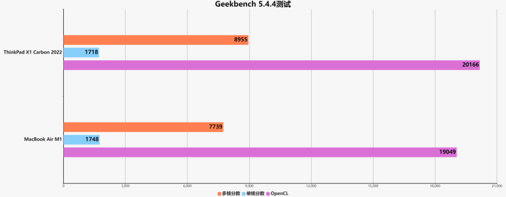 可以看到,尽管没有取得充分领先,但七项成绩测试中有六项,也就是说,无论什么纯粹的理论性能测试,或生产力过载的测试,ThinkPad X1碳2022酷的i7-1260P处理器,它比MacBookAir的M1芯片更好。由于编程和架构的不同,虽然M1的出现进一步提高了MacBook的效率,但从性能释放的角度来看,还有一些与中端冷处理器的区别。