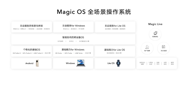 赵明说, Magic OS现在能够进行多通道和设备到系统通信,使手机的Android系统和电脑的Windows系统以及智能的ウェアラブル能够一起工作。