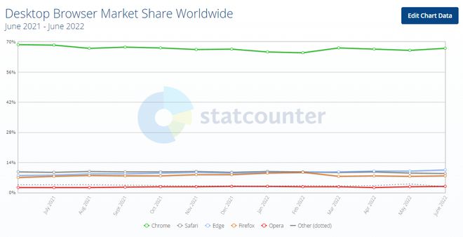 浏览器 7 月份全球市场报告出炉:微软 Edge 浏览器桌面端第二