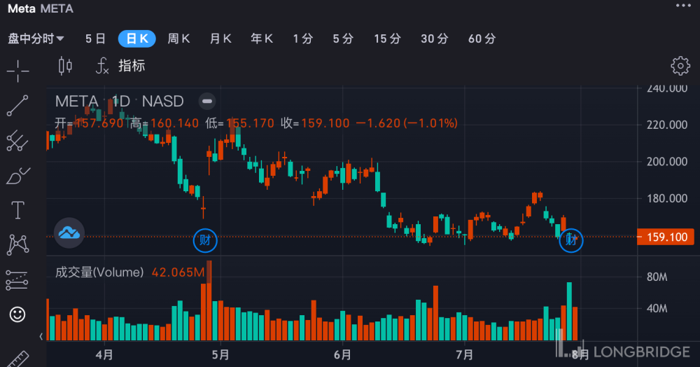 Meta 也有一些相同的特征。现在,这支股票看起来已经崩溃了。