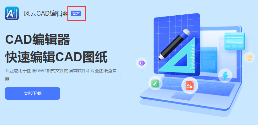 使用电脑浏览器搜索“风云CAD编辑器”,选择带有官方标志的网站进入。进入网站后点击“立即下载”按钮,之后选择安装包下载的位置,最后点击“下载”按钮。下载完成后打开安装到电脑中即可。