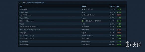 - 2022-08-02 Steam 软硬件 7 月调查结果出炉,W