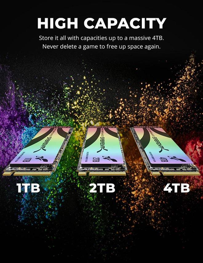 只需一块 Rocket 4 Plus G 固态硬盘,用户便可轻松应对高清多媒体制作等读写密集型任务,且可选 1TB / 2TB / 4TB 大容量。