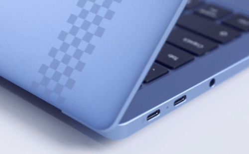 真我笔记本Air采用铝合金,薄为14.9mm,重量约为1.36kg,在14英寸的机器中还算轻薄。机器在配色方面与众不同。我们拿到的这款产品的配色为冰蓝棋盘,初次看到,视觉冲击力非常强。